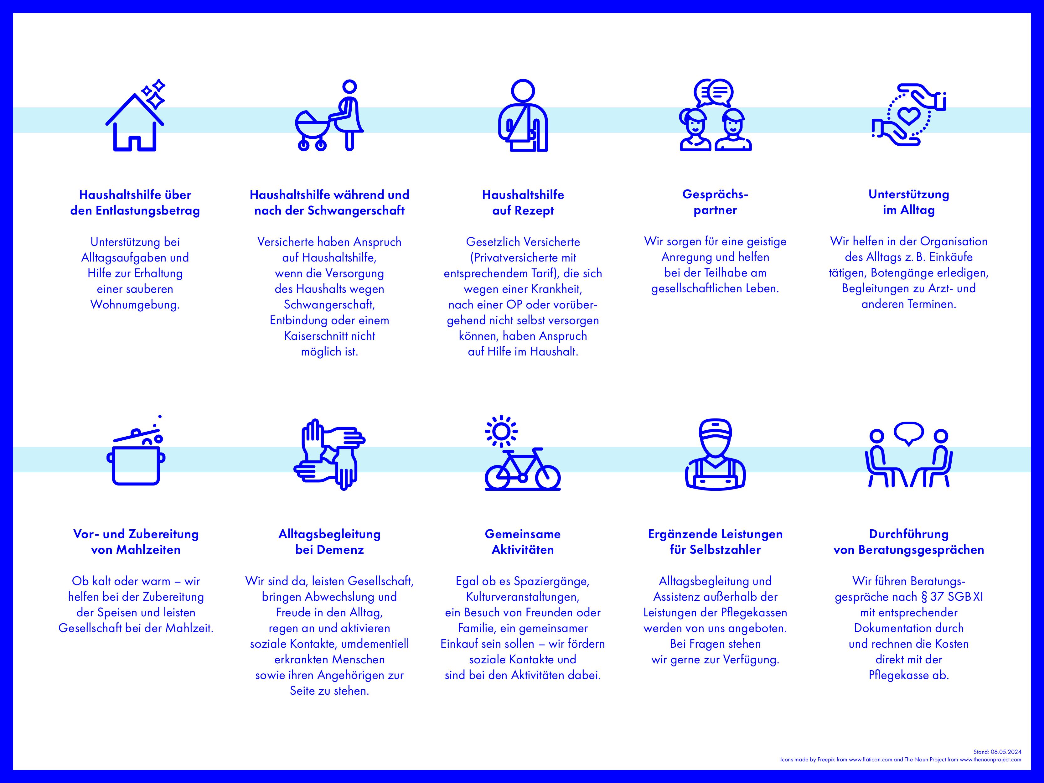 Ambulante Behandlungspflege, Grundpflege, hauswirtschaftliche und weitere Unterstützung