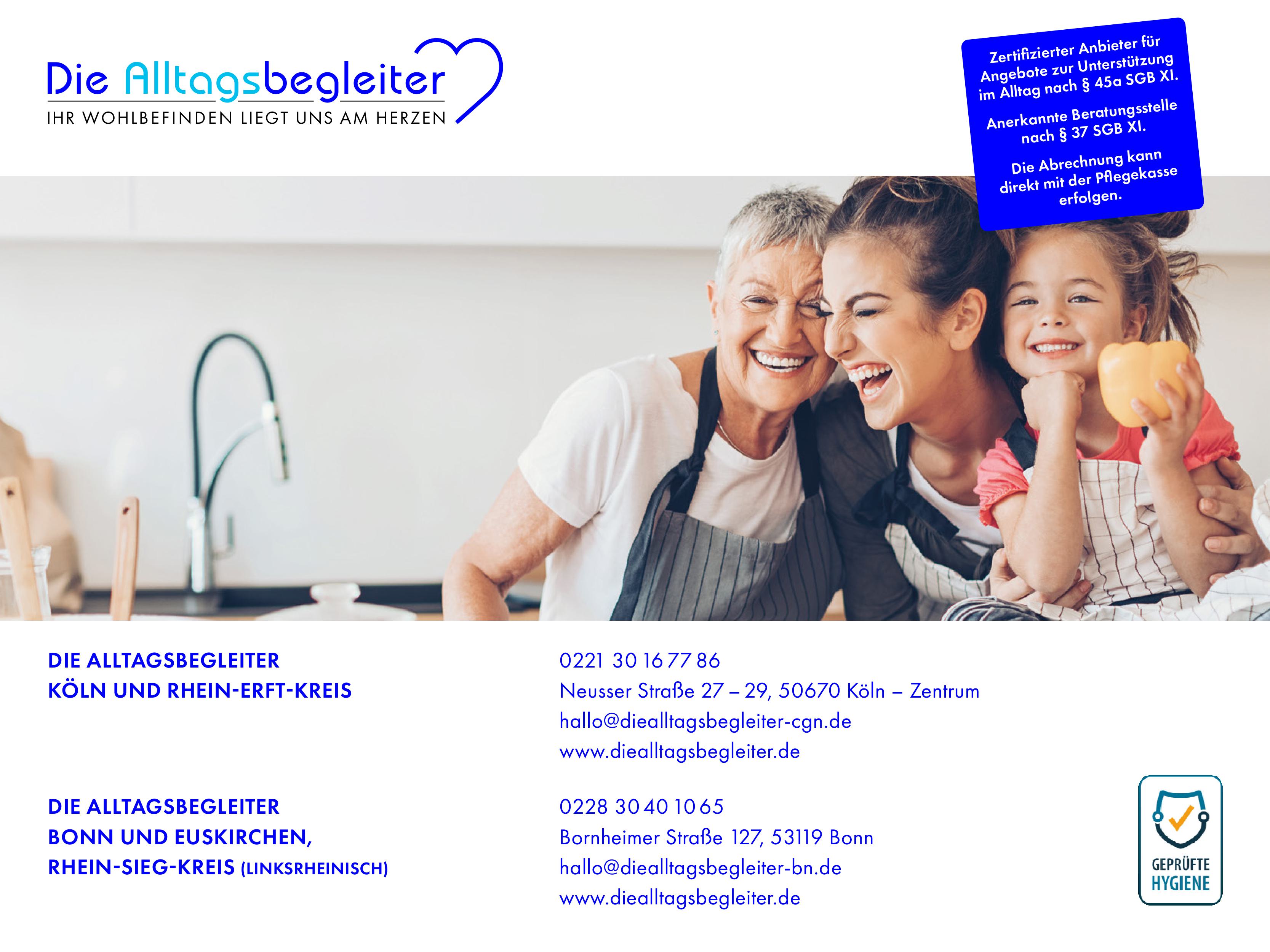 Das Erledigen alltäglicher Dinge und die Bewältigung des normalen Lebens können für Menschen mit Einschränkungen zur Herausforderung werden. Das Angebot von DIE ALLTAGSBEGLEITER umfasst Hilfeleistungen zur Unterstützung bei der Orientierung oder Gestaltung des Alltags, Hilfe im Haushalt, bei der Aufrechterhaltung sozialer Fähigkeiten und Kontakte der Pflegebedürftigen sowie sie darin zu unterstützen, möglichst lange ein selbstbestimmtes Leben zu führen.